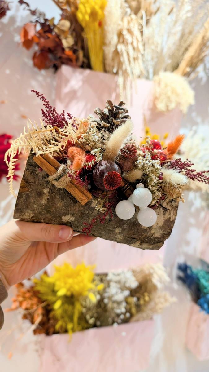Célébrez la magie de Noël en participant à notre atelier de création de bûche fleurie en fleurs séchées à Nantes. Une activité originale et poétique, parfaite pour les amateurs de DIY, d’art floral ou ceux qui souhaitent apporter une touche naturelle et élégante à leur décoration de fêtes.