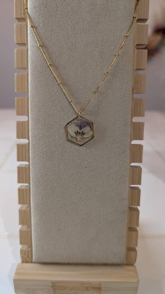 Ce collier en résine est composé de végétaux naturels séchés et figés dans de la résine, ainsi que d’acier inoxydable. Les végétaux, recouverts de résine transparente, conservent leur beauté naturelle pendant longtemps. Il est 100% fait main, imaginé et réalisé par mes soins dans mon atelier à Nantes, ce qui lui confère une esthétique unique !