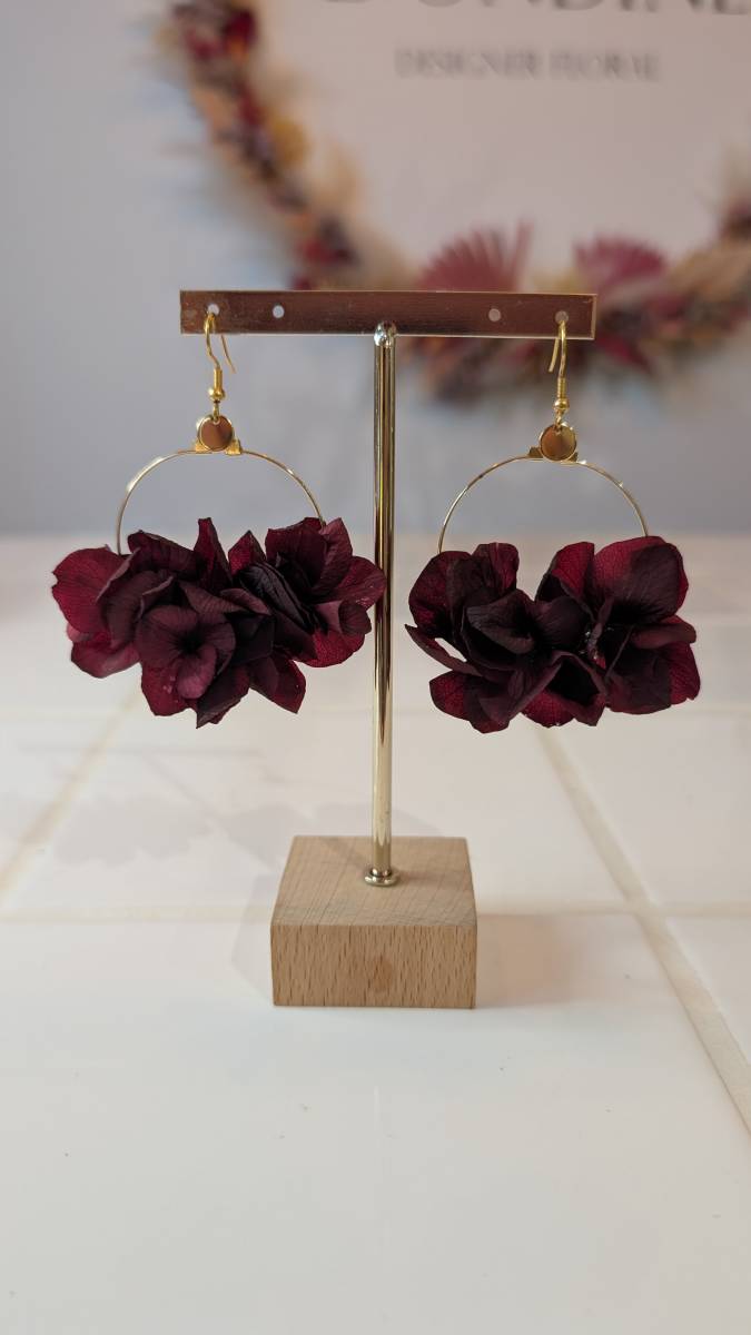 Cette paire de boucles est composée d’hortensia stabilisé et ainsi que d’acier inoxydable. Les hortensias sont des fleurs 100% naturelles qui ont subi un procédé de stabilisation pour conserver leur souplesse, ce qui leur permet de garder un rendu frais et naturel sans avoir besoin de les arroser.