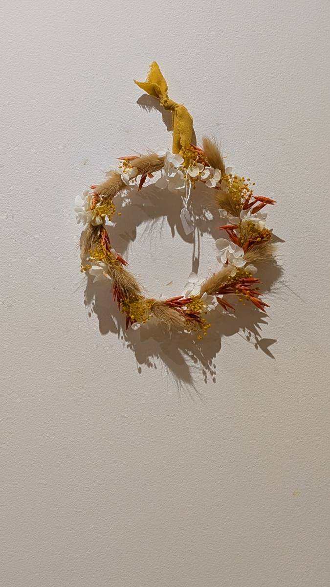 Cette couronne est composée de végétaux naturels séchés et stabiliser, qui conservent leur beauté naturelle au fil des années.