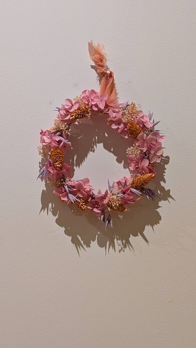 Cette couronne est composée de végétaux naturels séchés et stabiliser, qui conservent leur beauté naturelle au fil des années.