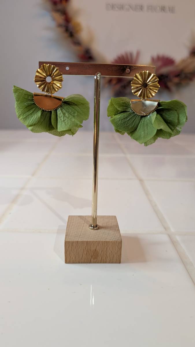 Cette paire de boucles est composée d’hortensia stabilisé et ainsi que d’acier inoxydable. Les hortensias sont des fleurs 100% naturelles qui ont subi un procédé de stabilisation pour conserver leur souplesse, ce qui leur permet de garder un rendu frais et naturel sans avoir besoin de les arroser.
